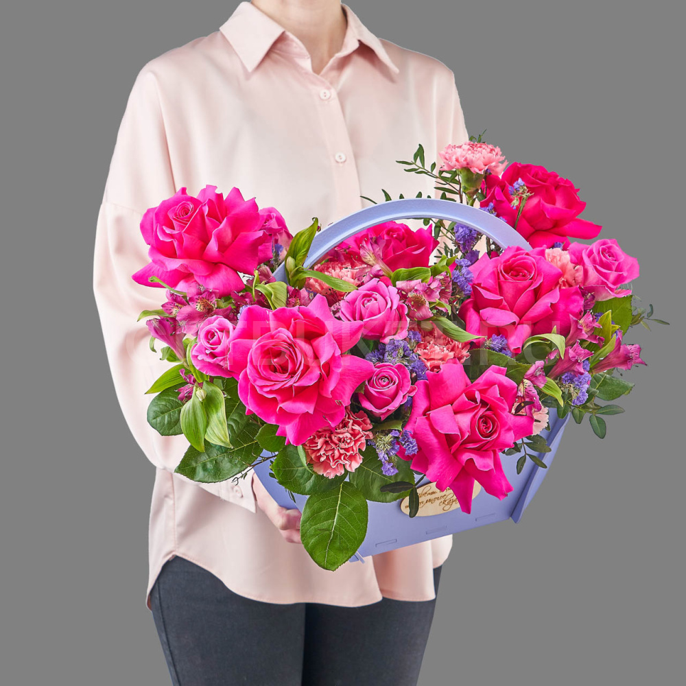 Цветочная композиция из малиновых роз, диантусов и альстромерий5 300 ₽Цветочная композиция из малиновых роз, диантусов и альстромерий 5 300 ₽ -