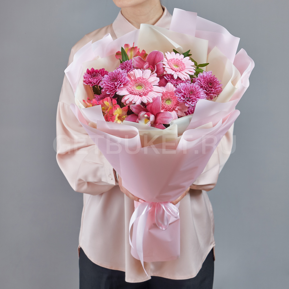 Букет розовых гербер, хризантем и роз с альстромерией7 890 ₽Букет розовых гербер, хризантем и роз с альстромерией 7 890 ₽ -